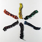 “Neil Caldwell marinates strips of regular supermarket bacon in baths of yellow, red, green and purple dye for from 24 to 30 hours. Then he fries the strips and – voila – red, orange, yellow, blue and purple bacon.